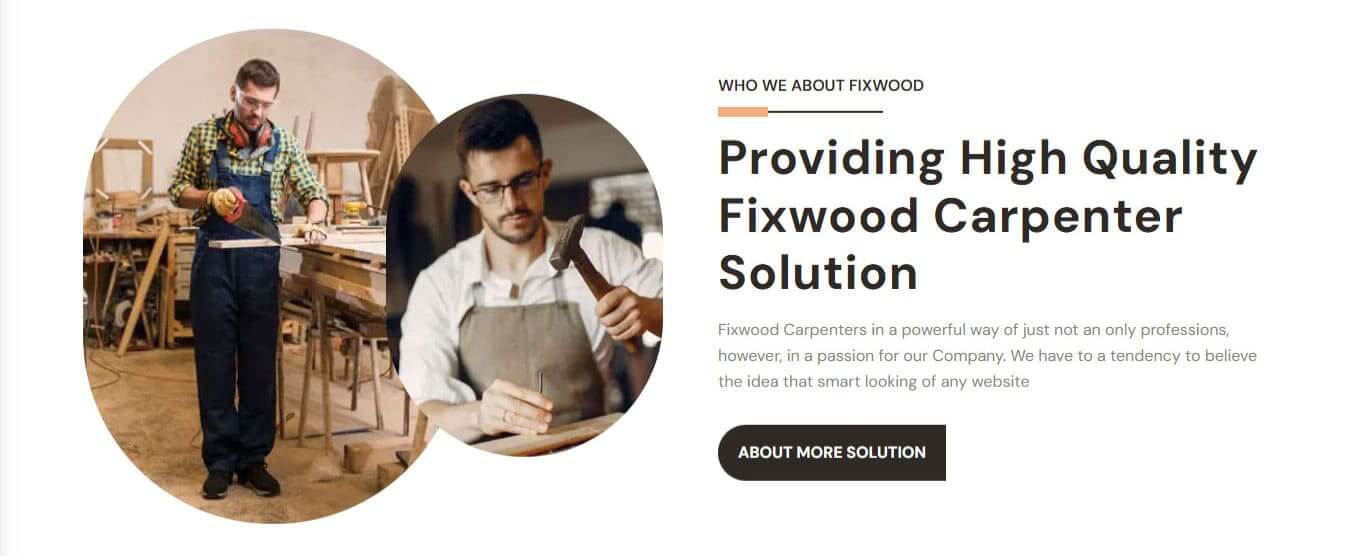 [introduction sub_title="Who We About Fixwood" title="Providing High Quality Fixwood Carpenter Solution" image_path_1="http://localhost/star/fixwood/wp-content/themes/fixwood-pro/images/abt-img-1.webp" image_path_2="http://localhost/star/fixwood/wp-content/themes/fixwood-pro/images/abt-img-2.webp" btn_text="About More Solution" btn_link="#"]Fixwood Carpenters in a powerful way of just not an only professions, however, in a passion for our Company. We have to a tendency to believe the idea that smart looking of any website[/introduction]