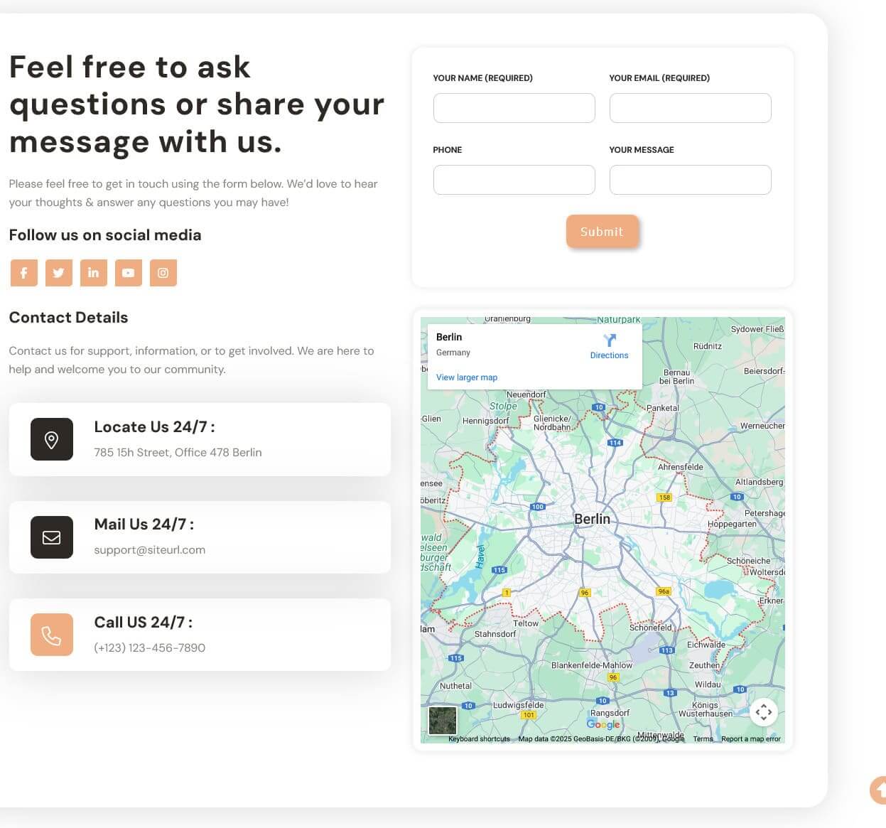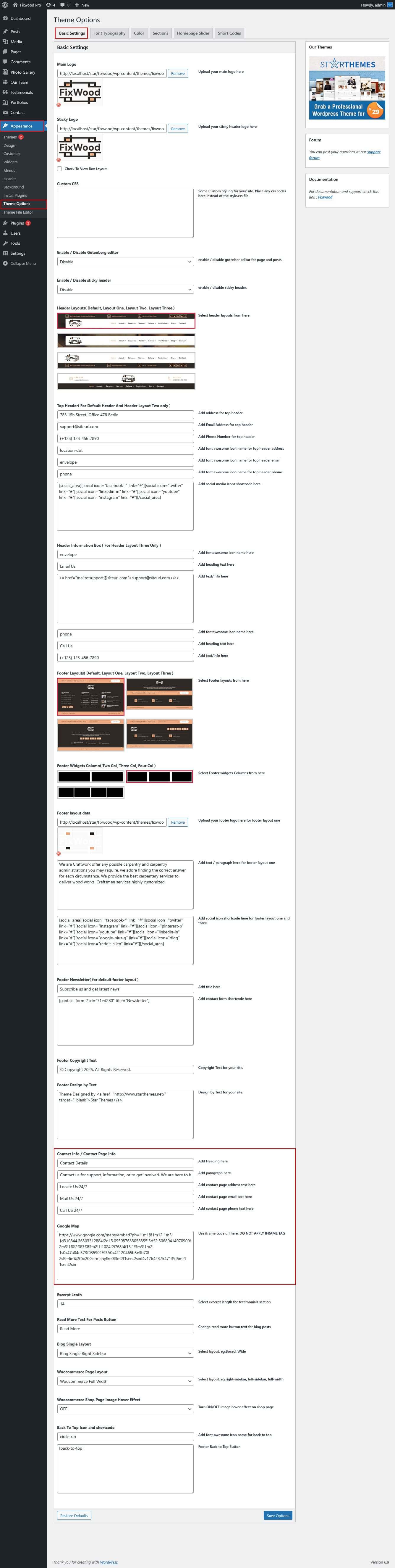 - For Top Header: For changing top header contact details go to Appearance >> Theme Option >> Basic Setting >> Add Contact Details - Social Icons