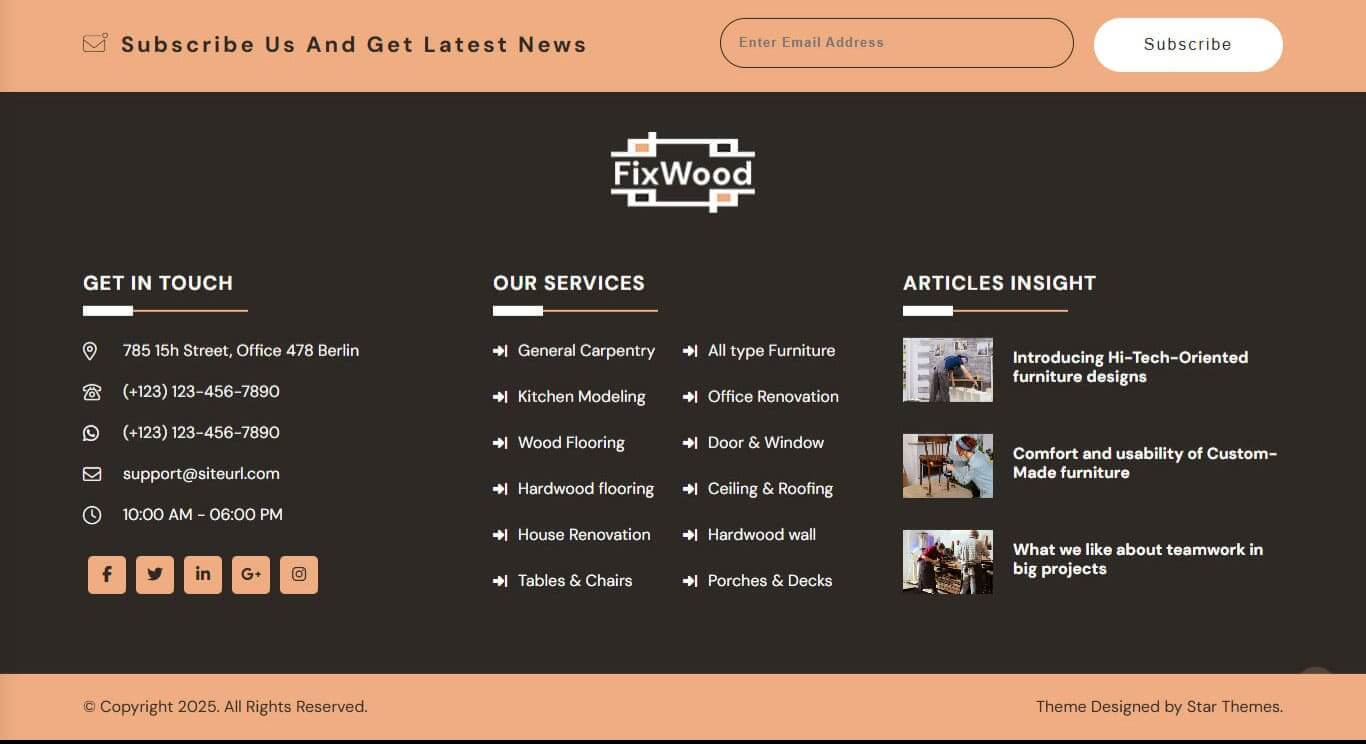 - For footer column 3: Go to Appearance >> Widget >> Footer 3 >> Add Widget Our Latest News