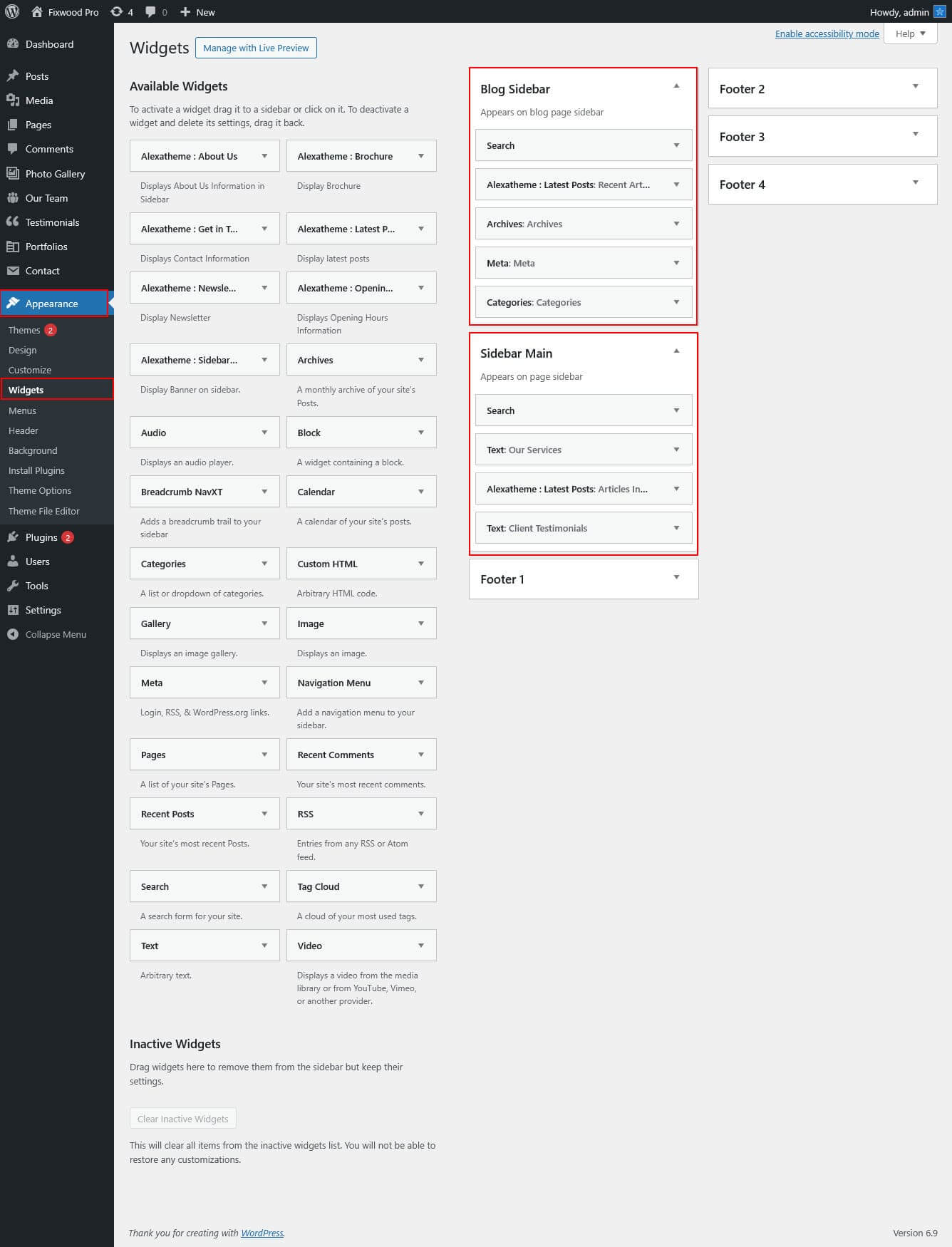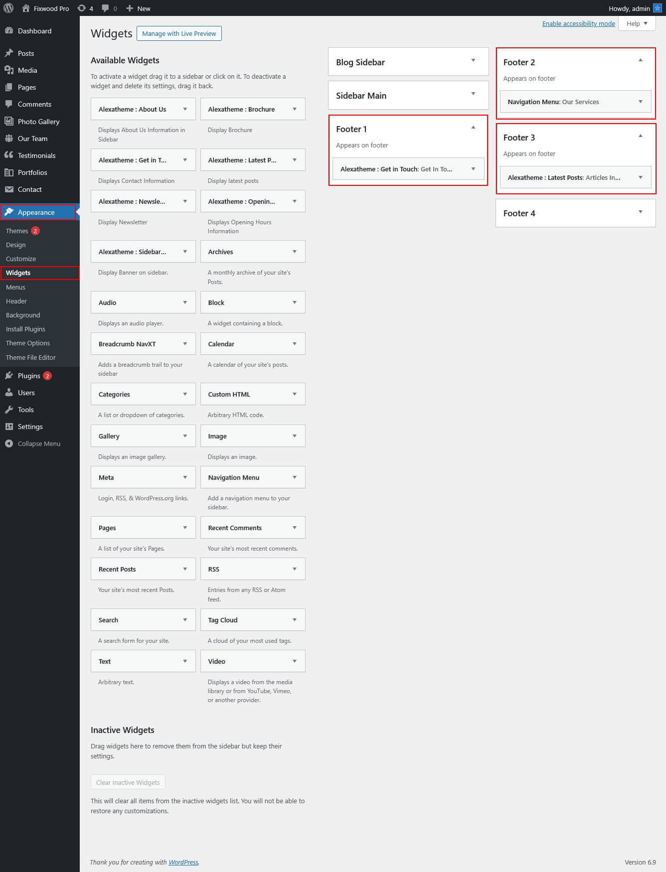 - For footer column 4: Go to Appearance >> Widget >> Footer 4 >>