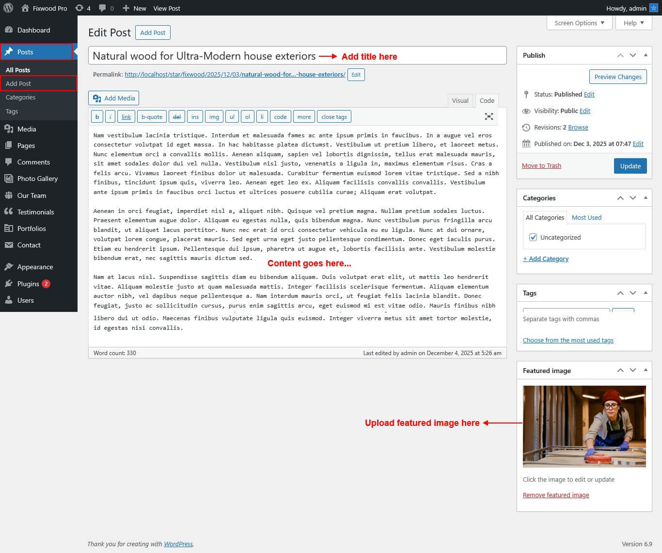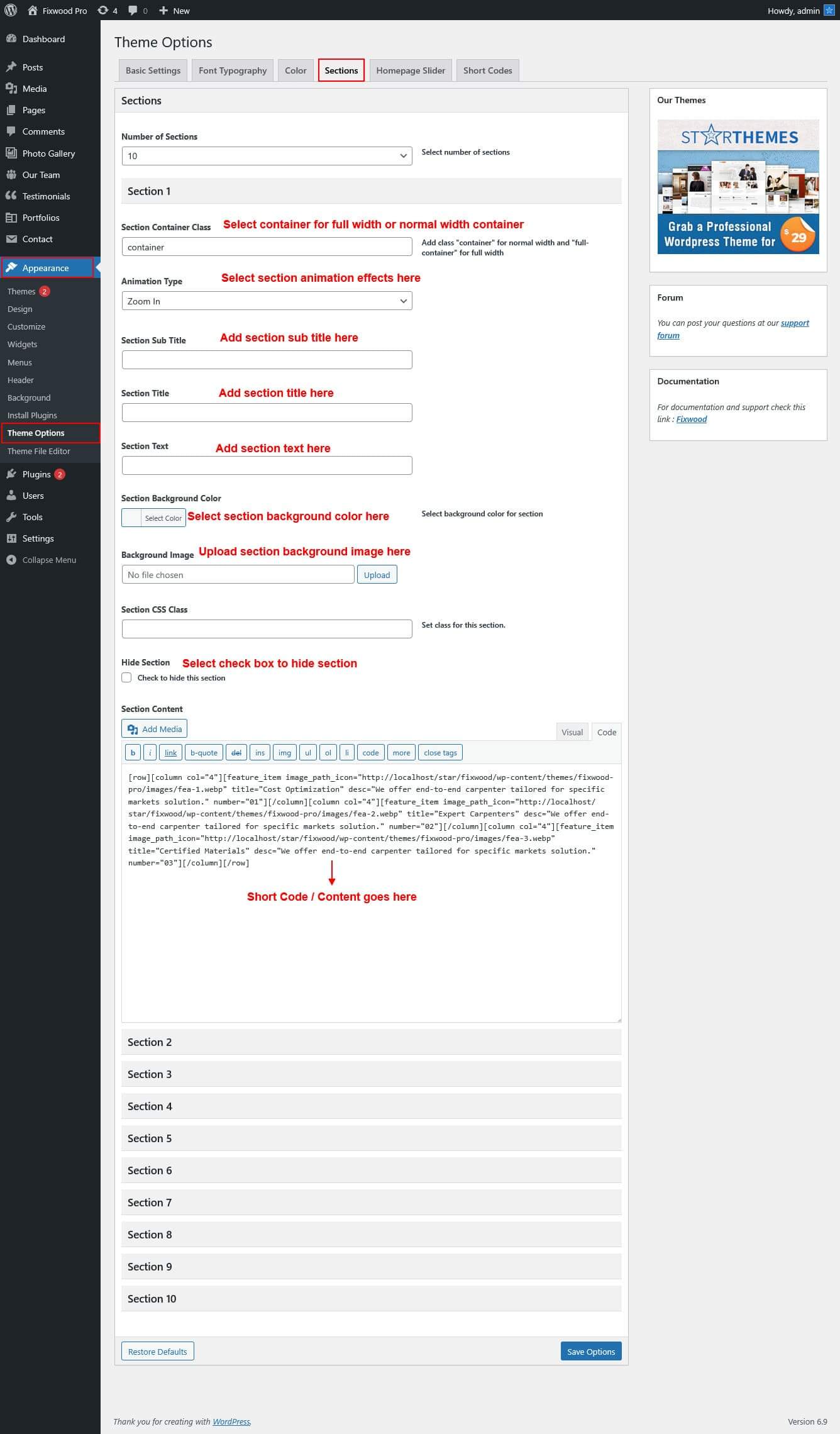 For setting up Who We About Fixwood section Go to >> Appearance >> Theme Options >> Sections >> Select Section 2.